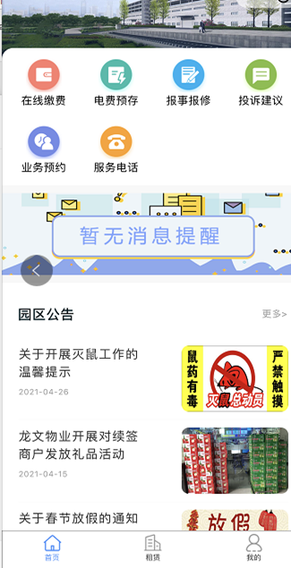 3月(yuè)10日,公司自主研發的(de)物(wù)業(yè)管理(lǐ)系統正式上(shàng)線,通過進入龍文(wén)鋼材市場(chǎng)公衆号的(de)“物(wù)業(yè)服務”闆塊,客戶就能(néng)在線進行(xíng)繳費、電費預存、報事報修等業(yè)務辦理(lǐ)。另外在“租賃”功能(néng)闆塊中客戶還能(néng)在線選擇租賃房間,房間大(dà)小(xiǎo)、位置、租金(jīn)都(dōu)進行(xíng)了詳細的(de)标注并且與線下同步,客戶足不出戶就能(néng)選擇自己滿意的(de)房間。随著(zhe)物(wù)業(yè)管理(lǐ)系統的(de)上(shàng)線使用(yòng),不僅可(kě)以避免客戶線下辦事排隊等候,還能(néng)實現線上(shàng)業(yè)務全天24小(xiǎo)時正常流轉,提高(gāo)園區物(wù)業(yè)服務效率,做到(dào)“工(gōng)作不打烊,服務不斷檔”。