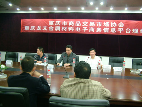10月(yuè)16日下午,由重慶市商品市場(chǎng)交易協會(huì)主辦的(de)重慶龍文(wén)金(jīn)屬材料電子商務信息平台現場(chǎng)會(huì)在我集團召開(kāi),集團董事長劉紅親自出席。參加此次現場(chǎng)會(huì)的(de)還有(yǒu)重慶市商品交易市場(chǎng)協會(huì)顧問、秘書(shū)長以及二十多家大(dà)型商品交易市場(chǎng)的(de)領導及相(xiàng)關人(rén)員。