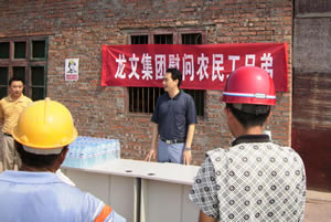 近日連晴高(gāo)溫,正在爲我集團重點建設項目——龍文(wén)金(jīn)屬材料物(wù)流中心工(gōng)作的(de)農(nóng)民(mín)工(gōng)兄弟,頂烈日戰高(gāo)溫、在酷暑下緊張施工(gōng)著(zhe)。爲了向他(tā)們的(de)辛勤工(gōng)作表示誠摯的(de)感謝,昨天上(shàng)午,集團公司總經理(lǐ)劉紅,來到(dào)物(wù)流中心施工(gōng)現場(chǎng),向工(gōng)作在酷暑高(gāo)溫中的(de)農(nóng)民(mín)工(gōng)兄弟送去了慰問和(hé)降溫降暑物(wù)品,農(nóng)民(mín)工(gōng)兄弟代表在發言中也(yě)表示了對集團關心的(de)感謝,并保證一定會(huì)保質保量地(dì)如(rú)期完成建設施工(gōng)。