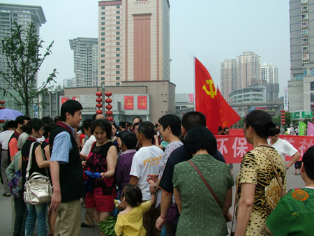 6月(yuè)14日,在大(dà)渡口區繁華商業(yè)步行(xíng)街(jiē)中心廣場(chǎng),龍文(wén)義工(gōng)隊組織了一次向市民(mín)免費贈送環保購(gòu)物(wù)袋的(de)活動,短短一個(gè)小(xiǎo)時裏,贈發環保購(gòu)物(wù)袋兩千餘個(gè),受到(dào)廣大(dà)市民(mín)的(de)好評和(hé)稱贊。